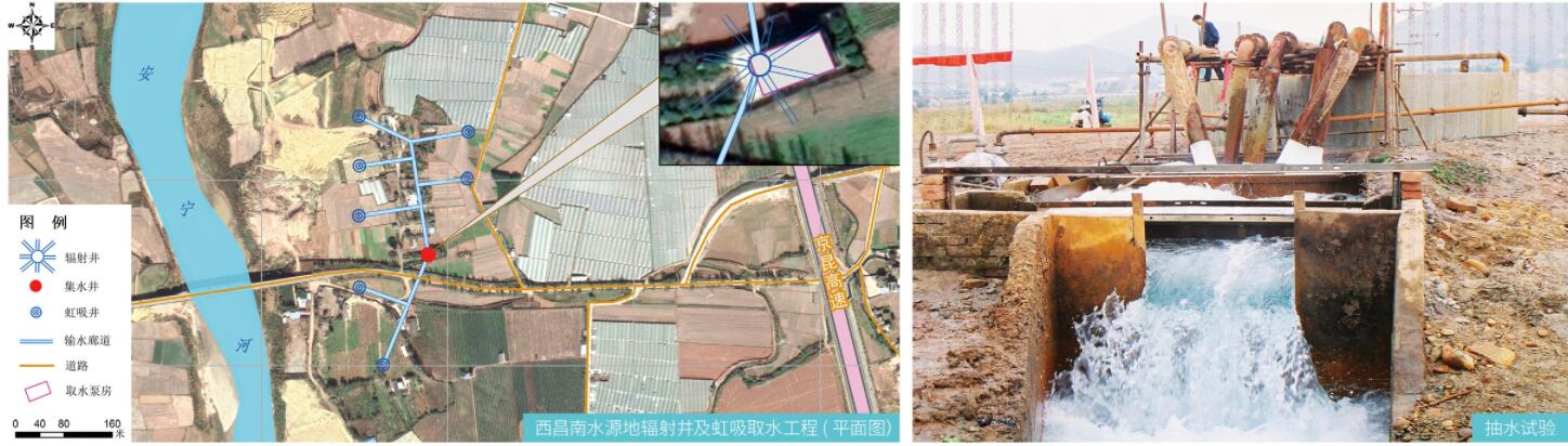 2001年川勘集團研發的“大口徑輻射井+虹吸井取水工藝”建成了取水量為2.6萬立方米/日的地下水取水工程,成功解決了成都鐵路局西昌南片區5萬多人的生活用水、站場及列車等生產用水之需,成為大流量開發利用地下水資源的典型成功范例。