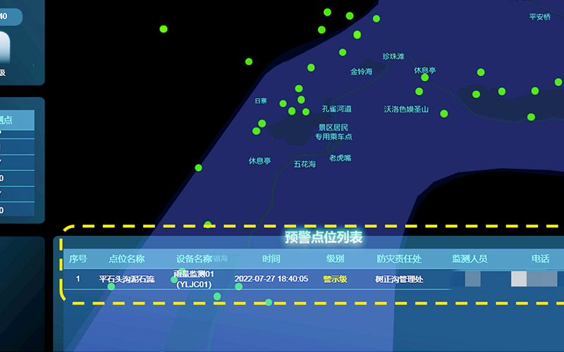 監(jiān)測預警平臺顯示預警信息